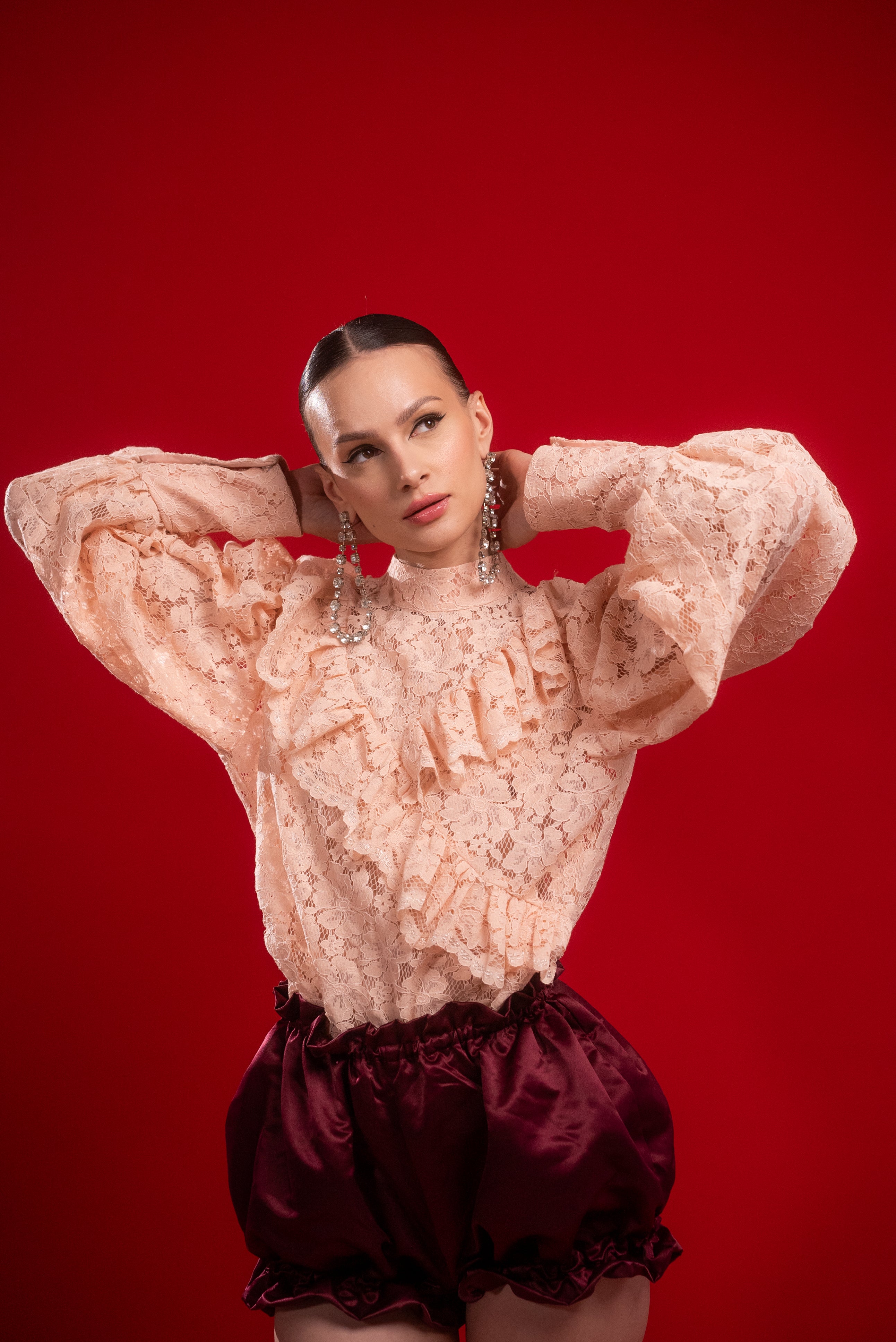 Miriam pink lace ruffle shirt