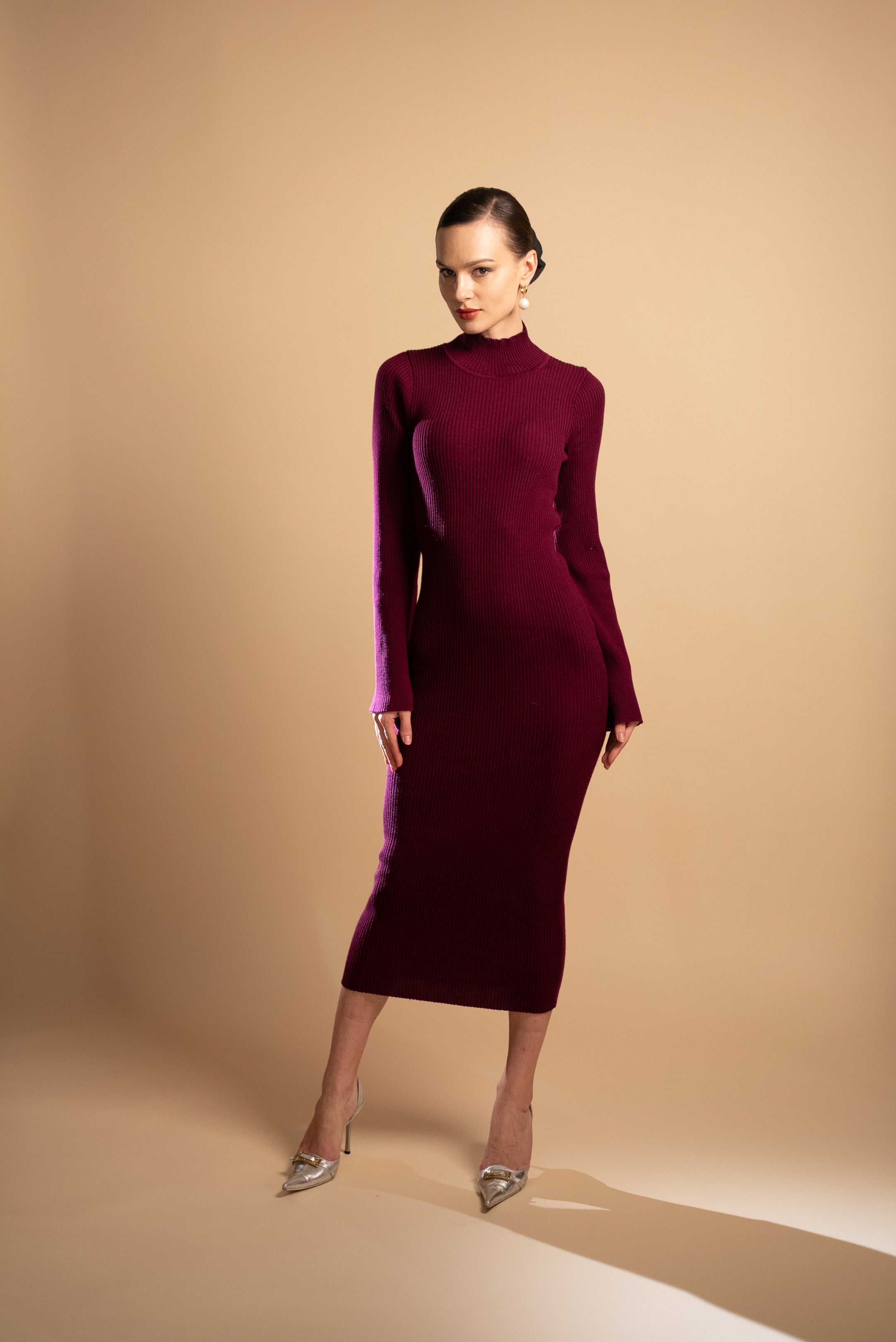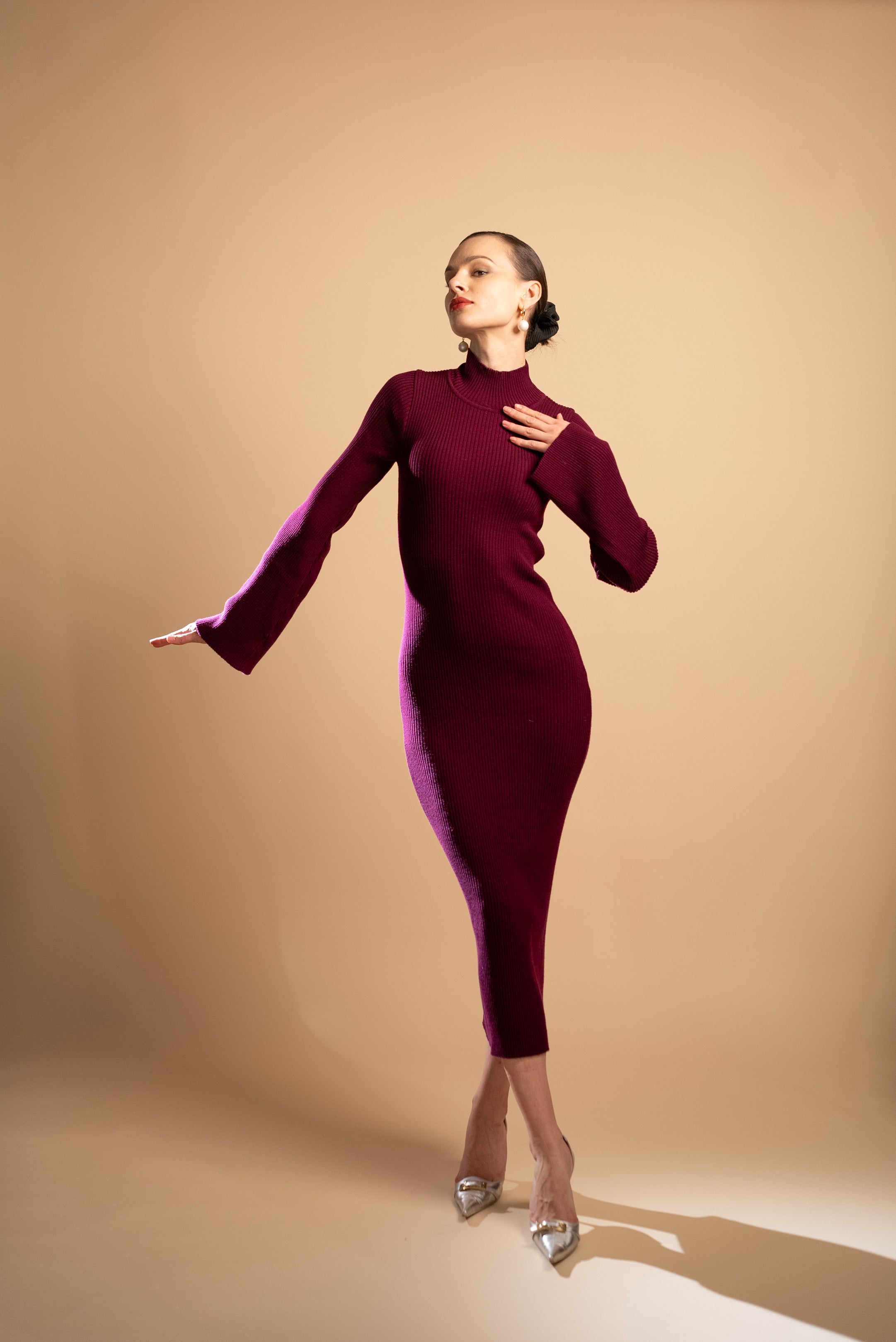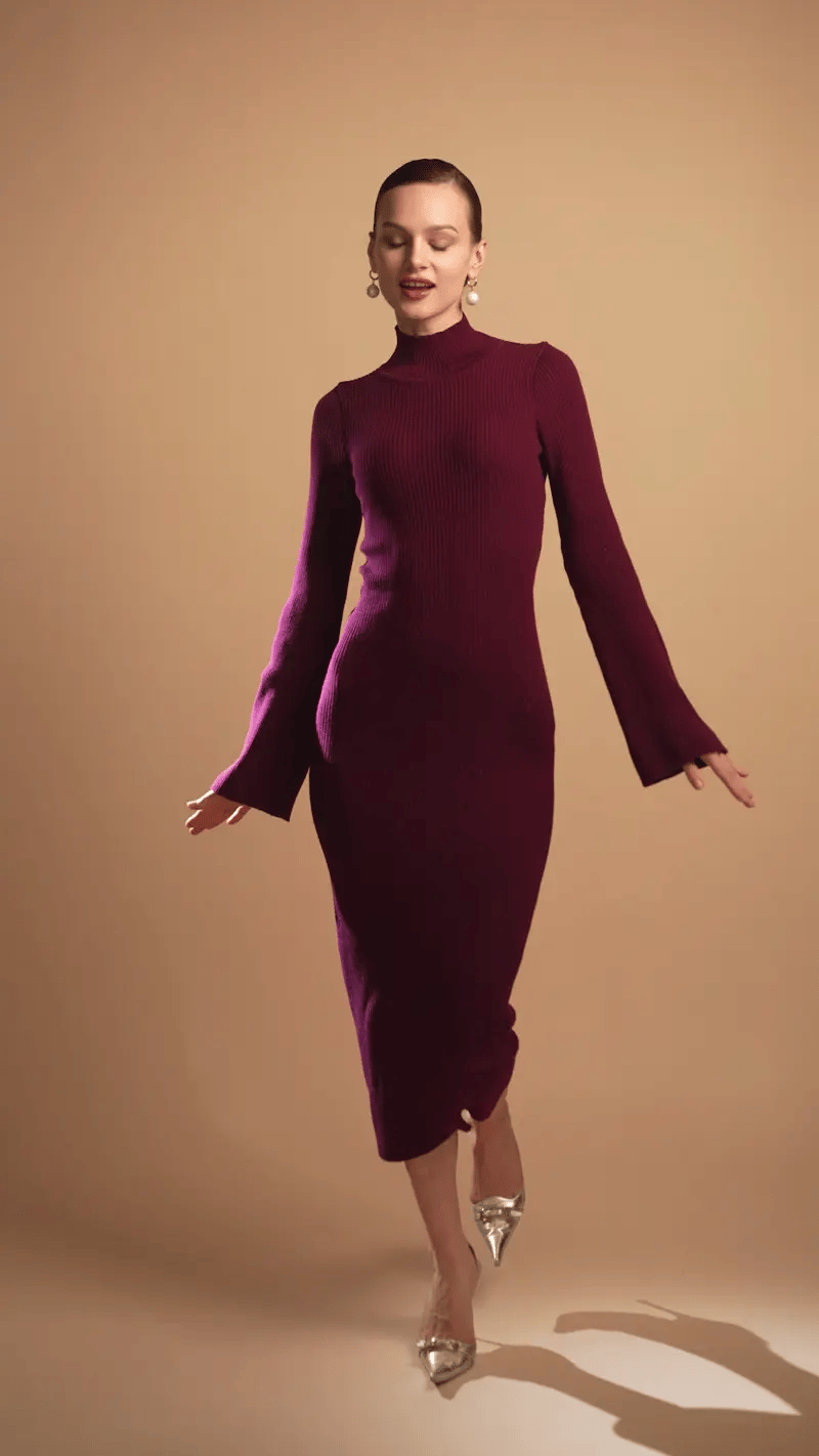 Isabel Burgundy Merino Wool Dress